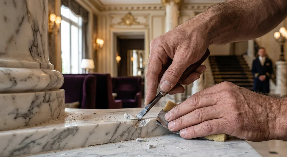 Travaillez la réparation esthétique des surfaces minérales, composites et dérivées avec précision.